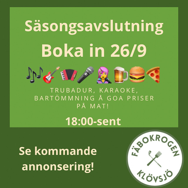 Läs merHäng med på säsongsavslutning med trubadur, karaoke och bra priser på mat och dryck!